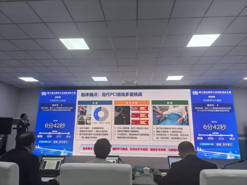 “同类的机器人在国外的研发进展是什么?”“这些数据的官方来源在哪里?”……在紧张的路演现场,各赛道项目平行进行。参赛博士后们不仅要精准阐述项目核心优势,还需应对评委们7分钟的专业提问。问答结束后,评分当场通过电脑系统亮出,现场虽无硝烟,却“战意”十足。