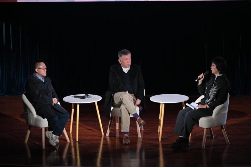 孙甘露分享了自己在创作过程中还原了1933年上海所做的极致考据,并强调这种对物质细节的精准把握,是构建叙事可信度、激起观众想象的基石。张冀坦言,他选择改编《千里江山图》,正是被小说中一群“有职业的普通人”所吸引,看到了与当下年轻人相通的生存状态,从而找到了历史与当代的情感连接点。对谈主持、文学系副教授杨蕊最后总结到,“一切的技术与结构,最终都要落到人最纯粹的情感上来。”