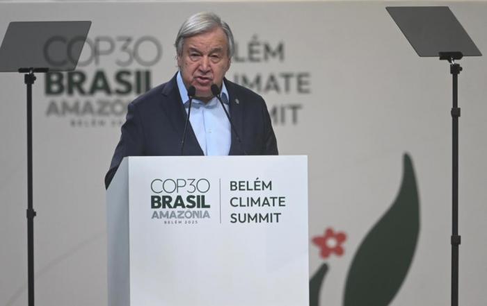 11月6日,联合国秘书长古特雷斯在贝伦气候峰会上致辞。