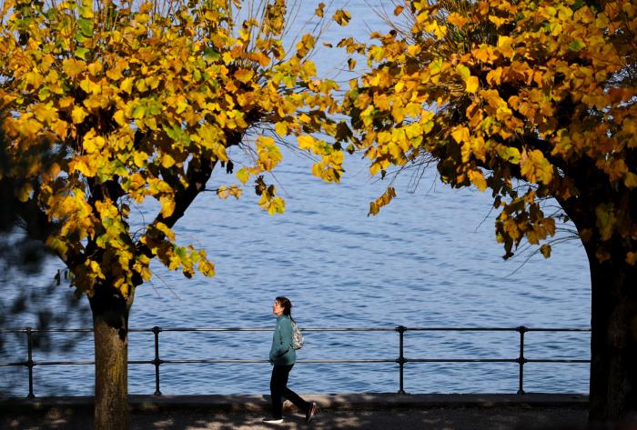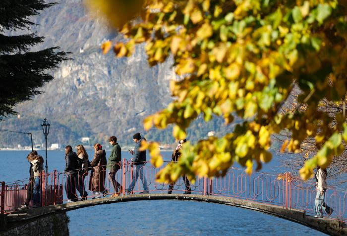 11月7日,行人在意大利科莫湖畔小镇贝拉焦游览。
