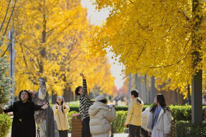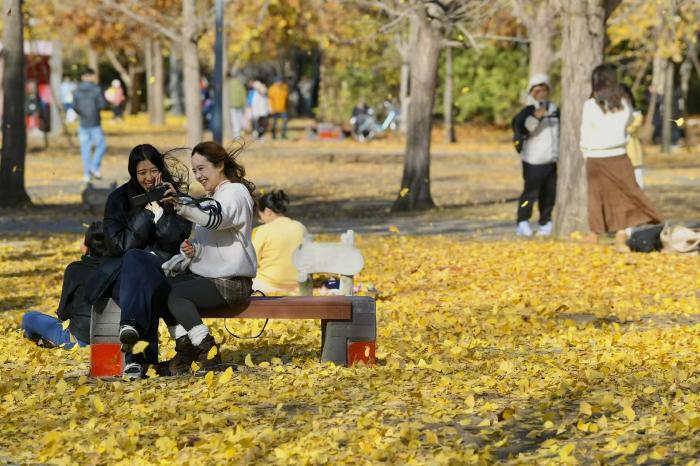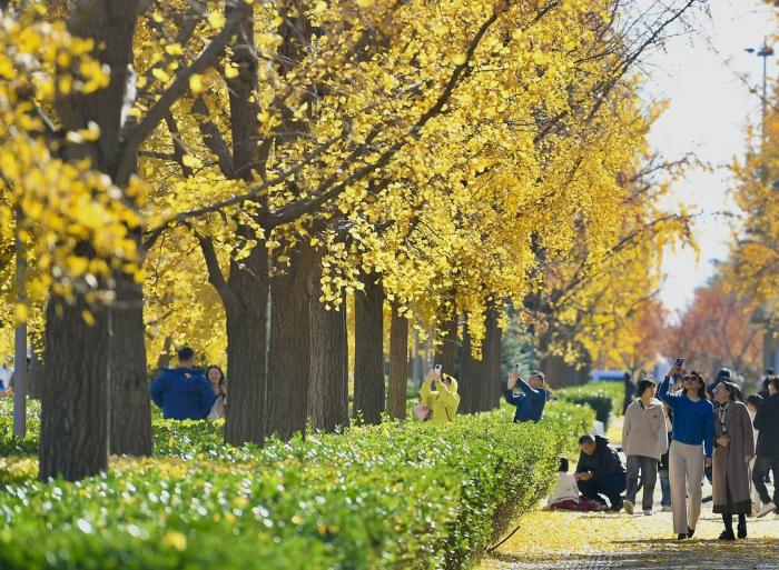 深秋的北京,奥林匹克塔下20亩银杏林藏着别样浪漫,千株银杏的金黄叶片铺满地面,织就一片松软的“黄金毯”,与昵称“大钉子”的奥林匹克塔相映成趣,成为青年人周末打卡的热门之选。