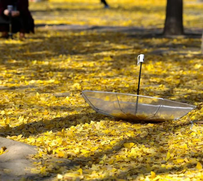 阳光洒在满地金叶上,折射出温暖光晕,踩上去沙沙作响,宛如行走在金色梦境中。