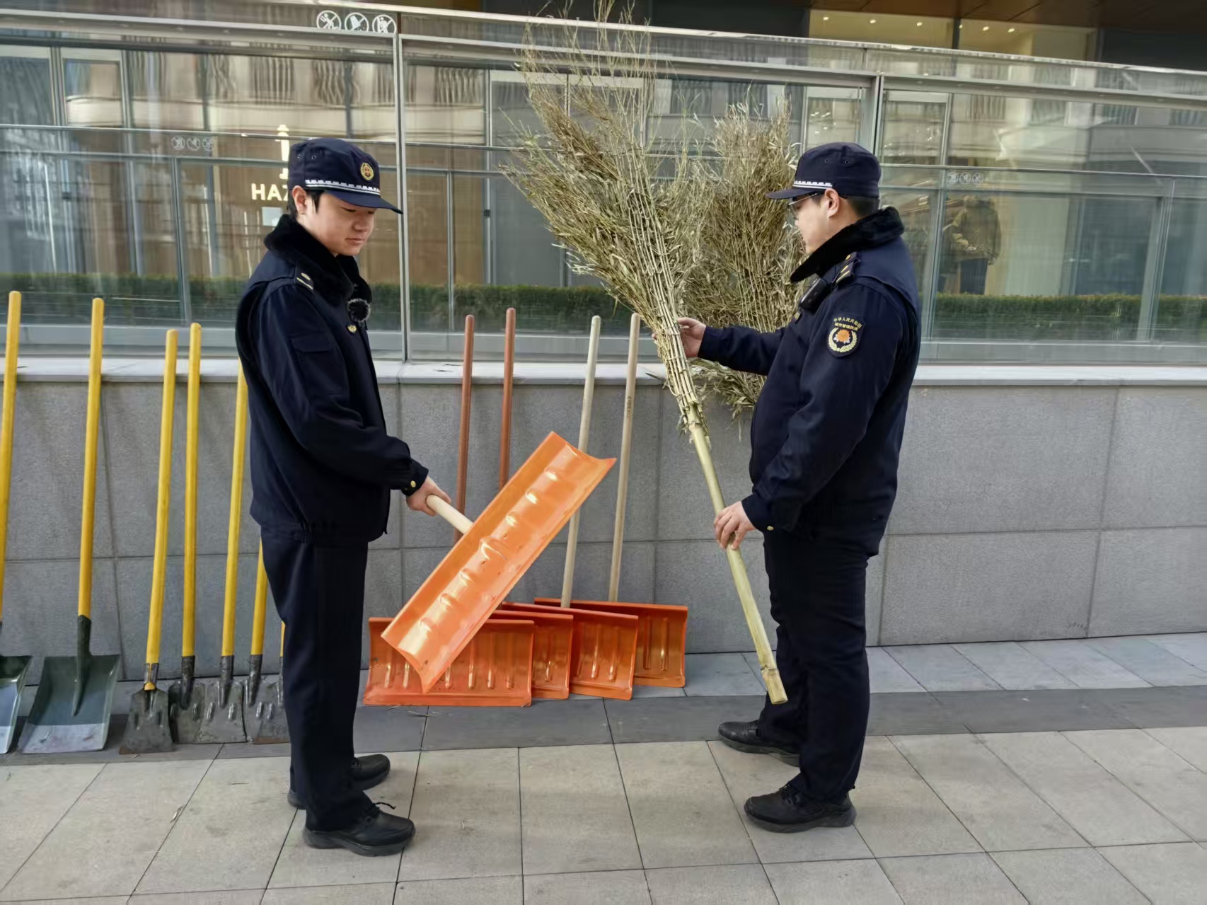 在西北旺的万象汇,马连洼街道综合行政执法队提前对商场物业方进行了扫雪铲冰宣传动员。在物业的设备库,执法人员看到,扫雪铲、扫雪推车、除冰铲、铁锹、扫帚等各类工具准备得十分充足。