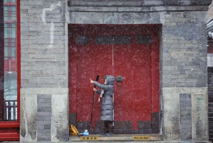 12月12日,初雪映衬下,北京中轴线上古老的文物建筑古朴宁静,韵味独特。鼓楼的大街小巷中漫步,感受雪花的飘落和城市的繁华。