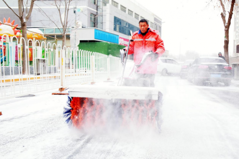 为了确保清扫见实效,小红门乡组织工作人员使用专业扫雪设备,让被汽车碾压的“顽固”积雪能够被瞬间清除。公共文明引导员在下班高峰前,以地铁口、公交站、主要路口为阵地,开展扫雪铲冰。
