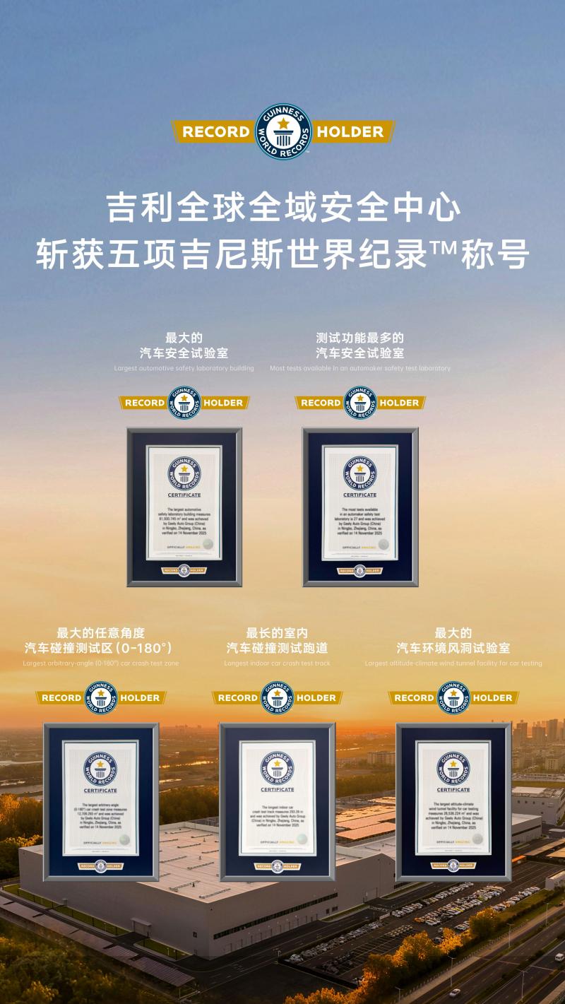 2025年12月12日,吉利全球全域安全中心正式发布,中心面积超8万平方米,具备27大类测试能力,覆盖全域安全技术验证。一举创下“全球最大的汽车安全试验室”、“全球测试功能最多的汽车安全试验室”等五大吉尼斯世界纪录,并宣布即日起面向全行业开放共享。