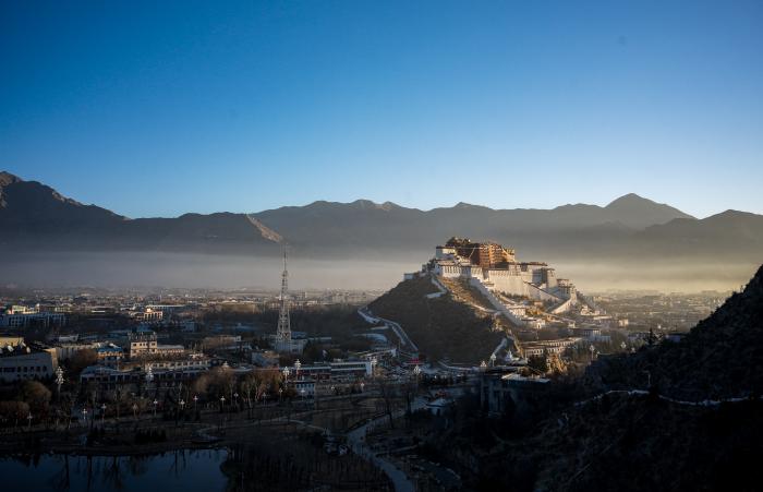 这是2月18日拍摄的新年晨光中的布达拉宫。