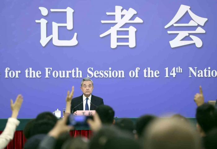 3月8日上午10时,十四届全国人大四次会议举行新闻发布会,中共中央政治局委员、外交部长王毅就“中国外交政策和对外关系”相关问题回答中外记者提问。