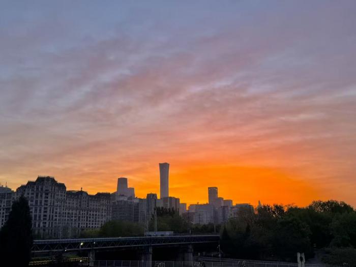 不少市民停下脚步,用镜头定格这一瞬的温柔,朋友圈里满是朝霞下的京城风光。