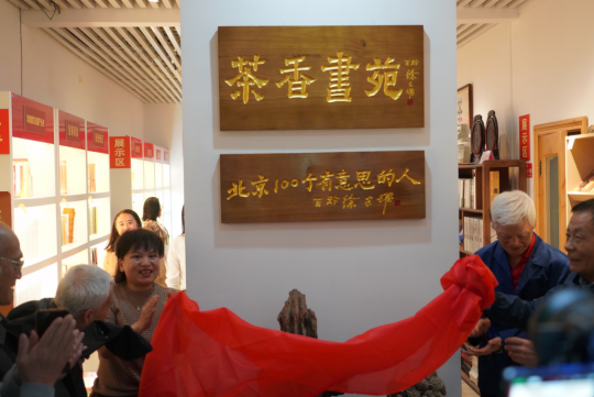 值得提及的是,“北京100个有意思的人”与“茶香书苑”匾额由著名作家、百龄老人徐光耀题写,字里行间,深藏着前辈对后辈的嘱托,更多的则是一片拳拳报国心。木匾金字,与阅读空间所在地马连道双拥一条街上坐落的“小兵张嘎”塑像遥相呼应,蕴含丰富的红色文化与历史记忆。