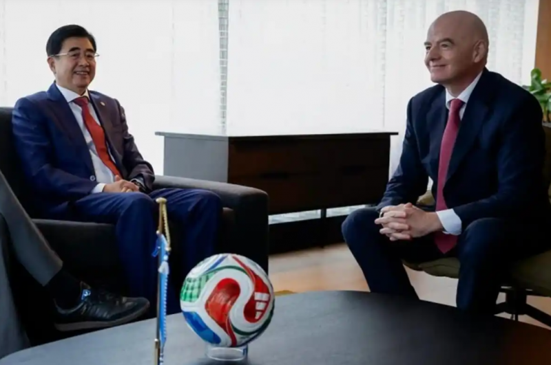 国际足联主席为国产品牌“站台” 中国足协领导寻机外交