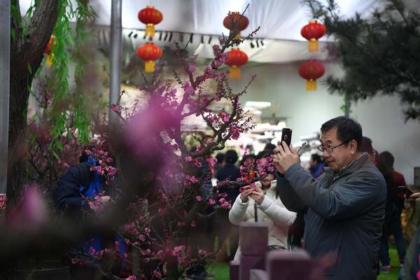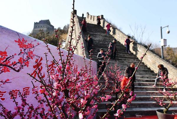 2月23日,北京首届长城梅花节暨2019第四届响水湖长城梅花展在响水湖开幕。今年长城梅花节的主题是“花香古长城۰梅展中国风”,千余盆姿态、颜色各异的梅花为游客在早春时节营造了一个缤纷绚烂的世界。