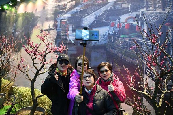 “江南梅花经过‘南梅北移’驯化实验后,得以在塞外为游客呈现水墨意境的‘印象江南’。游客漫步梅展大厅,仿佛置身于梅山花海,徜徉于小桥流水,梦回江南。”李鸿飞介绍,“室外展”在长城两侧展示了嫁接成活的数千株梅花,为游客呈现了“梅映长城”的独特景观。此外,展览通过营造印象江南、梅舞国风、中华风骨、岩峭雪梅等小景观,展现了不同风格的中国景观特色。