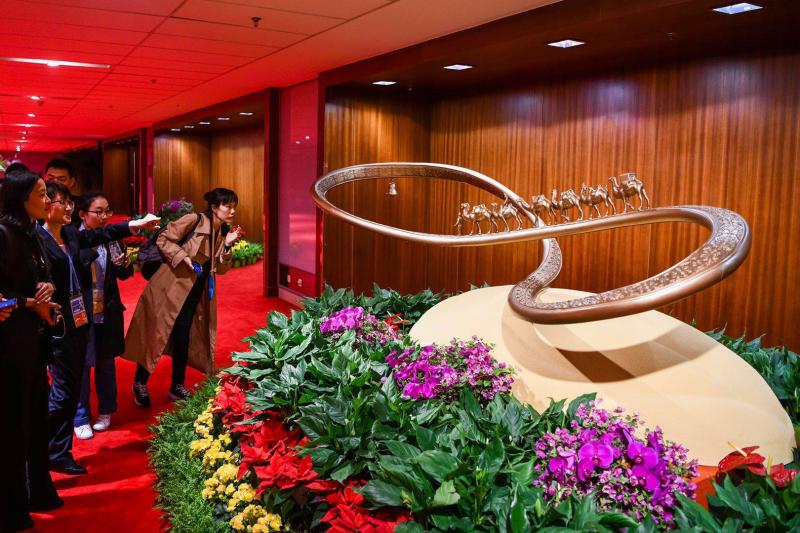 会场的布置处处体现“一带一路”特色。