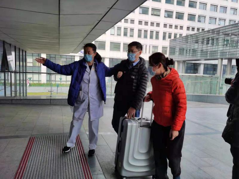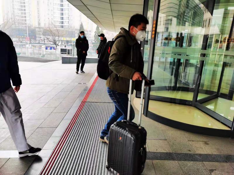 下午1点多,宣武医院学术报告厅门口,医生们步履匆匆,有的医生拖着行李箱健步如飞,有的医生刚下岗位,还没来得及脱下工作服。1点58分,王长亮和邢正涛两位护士刚从急诊过来,还穿着工作服,没有收拾任何个人行李,直接就来了报告厅准备集结出发。