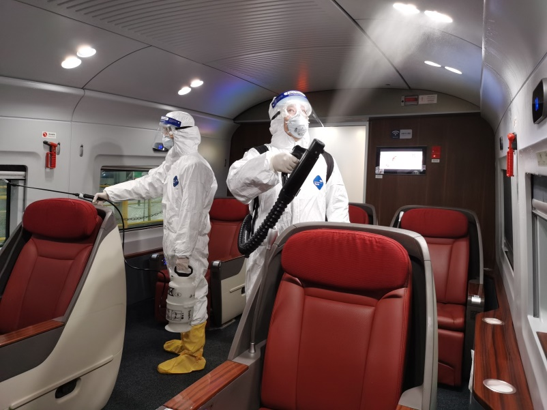同时,北京铁路局加强列车入库清洁消毒作业,每日对所有入库高铁和普速列车进行全面消毒,为旅客出行提供安全的乘车环境。