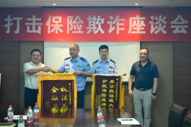 “感谢你们对保险反欺诈工作的大力支持和辛勤付出,你们辛苦了。”7月8日,在兰溪市公安局打击保险欺诈座谈会上,金华人保财险副总经理詹春林向兰溪公安送上锦旗。其间,民警将案件赃款退还给各保险公司。