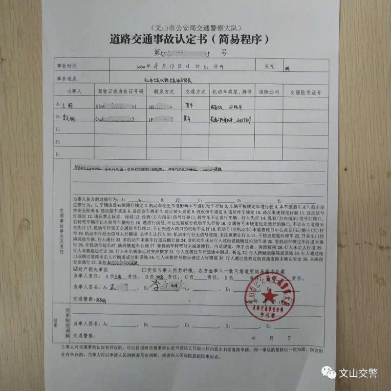 经交警部门调查认定,城管车驾驶人王某由于变更车道影响正常行驶的机动车负此事故的主要责任,摩托车驾驶人李某某由于操作不当负次要责任。针对王某在驾驶车辆过程中变更车道影响正常行驶的机动车的违法行为,文山市公安局交警大队对其作出了罚款50元的处罚,并对驾驶人进行了严肃的批评教育。