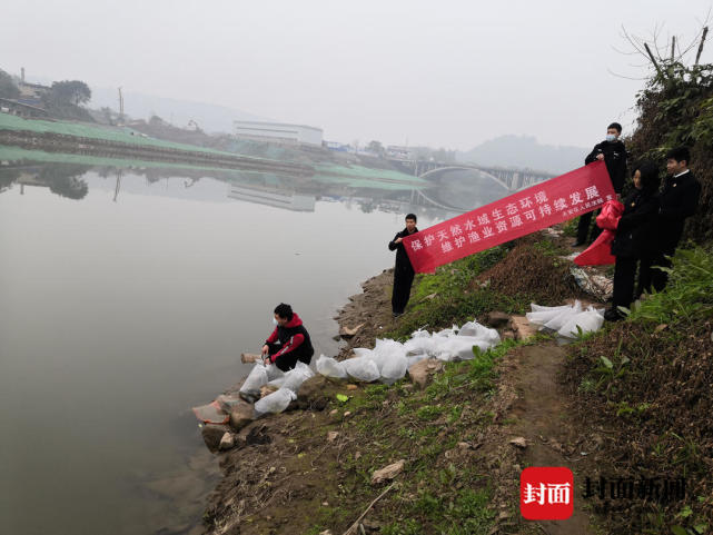 1月27日上午,自贡市民杨某在大安法院及大安区农业农村局、大安区检察院的共同见证下,在大安区北环路双河口大桥下釜溪河岸边实施了渔业资源保护和生态修复增殖放流活动,共投放鱼苗2万余尾。