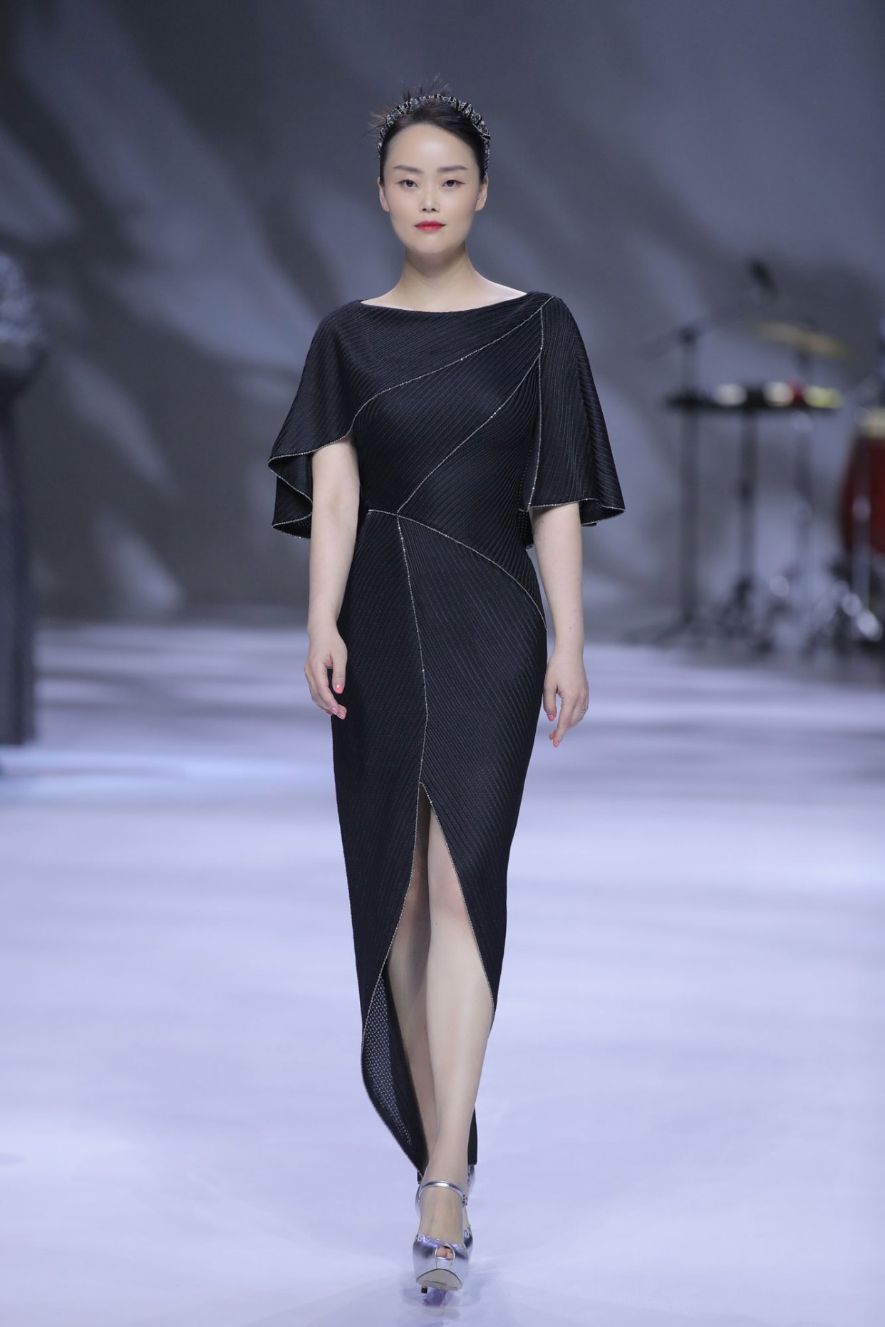 中国的琴音里,有中国风雅、气韵、风骨、智慧。整场秀由万年古琴演奏的《流水》开场,GRACE CHEN第一系列以灰色、黑色、白色、金色、银色为主,水墨中国山水画卷自此铺开,意境悠远。中国山水仿佛倒映在朦胧的水流中,通过轻盈的蕾丝和轻纱营造出国风音乐独有的“翩跹”。