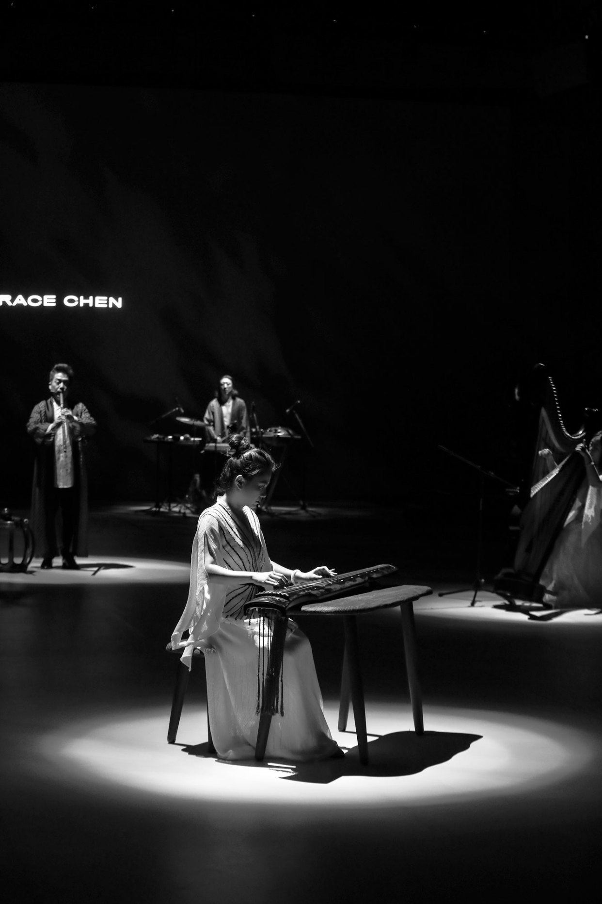 “琴”系列的开场太抓人了,一场让人惊艳的中国风雅系列由此展开。琴声悠悠流入心中,在黑暗中唤醒现场每个嘉宾的耳朵,空灵、悠扬、朦胧,人心慢了、静了、润了。