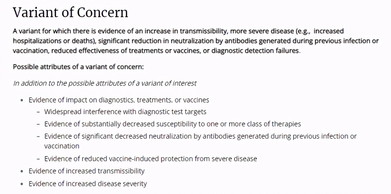 但实际上,这个“variants of concern”是一个特有的词组。根据美国疾控中心的介绍,“variants of concern”指的是那种具有较高传染性,更容易引发重症,且更难以被免疫系统和疫苗中和掉的变异毒株。而且这种变异毒株一旦被出现,都会立刻报给WHO。
