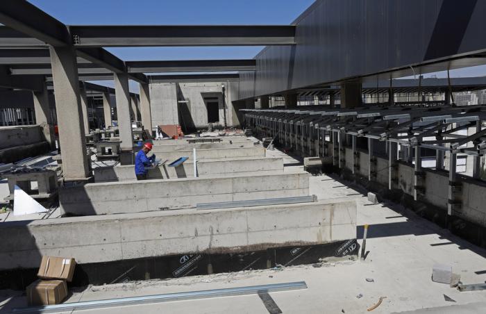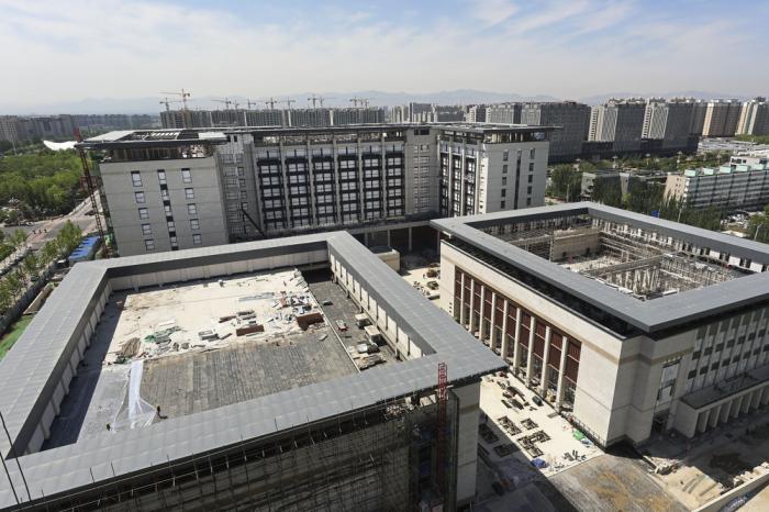 这是5月17日拍摄的冬奥会非注册VIP接待中心建设项目施工现场。 作为2022年冬奥会配套设施,位于河北省张家口经济开发区的冬奥会非注册VIP接待中心建设项目主体结构完成。