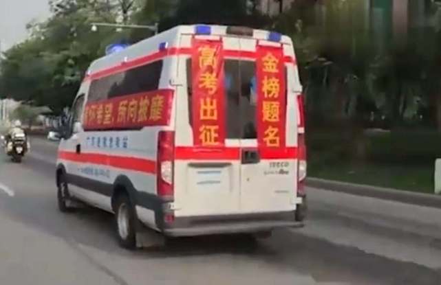 6月7日高考首日,广东佛山有多名考生乘坐救护车赴考,车身上红底金字“满怀希望,所向披靡”“高考出征,金榜题名”的标语让不少网友感动。北青-北京头条记者从急救站了解到,此次高考,急救站总共派出3辆救护车接送5名考生,其中3名考生在疫情封闭小区,3人同乘一辆急救车,2名考生在隔离酒店,专人专车接送。为给考生们加油打气,急救站工作人员6日晚加班加点到7日凌晨4点,为接送考生的救护车贴上了祝福标语。