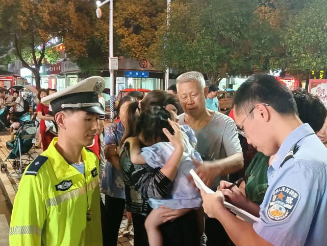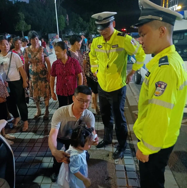 6月30日,江西省吉安市公安局发布消息,6月24日晚上8时20分许,永丰县公安局交警大队恩江中队民警在欧阳修广场路口执勤时,发现一名3岁左右的小女孩孤身一人走在马路中间,身边的车辆川流不息,情况十分危险。民警立即疏导车辆,并将小女孩带至执勤点。