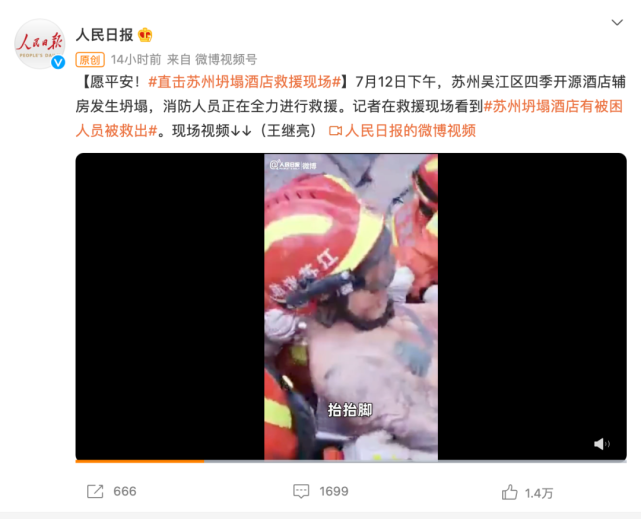7月12日下午,江苏省苏州市吴江区四季开源酒店辅房发生坍塌。