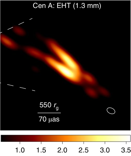 此外,图像也显示了半人马座A(CenA)黑洞喷流明显的边缘增亮效应,这对既有的黑洞喷流理论模型构成挑战。该研究结果于近日发表在《自然-天文学》中,通讯作者为德国马克斯普朗克研究所的天文学家Michael Janssen。