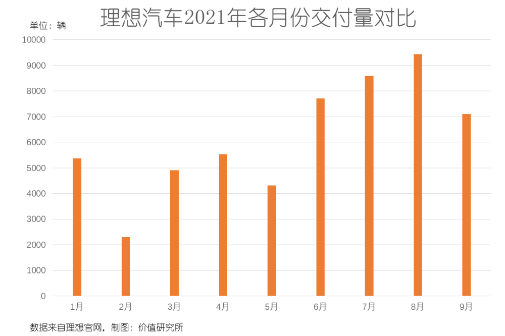 进入2021年以来,理想的新车交付量也有过起伏。