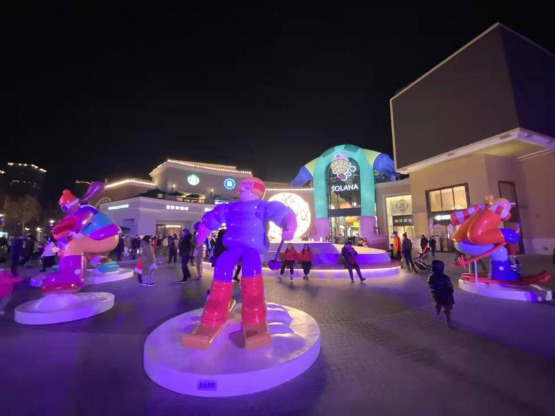 今年蓝色港湾灯光节的艺术装置以冰雪主题的艺术装置和灯光组合,通过童趣的造型,明亮大胆的配色,打造出梦幻奇异的“奇趣冰雪家族”,点缀于商区的各个位置。“在全民迎冬奥的倒计时阶段,希望通过灯光节,让市民感受冰雪之美,助力冬奥举办。”蓝色港湾相关负责人说,灯光节以冰雪运动为灵感,希望这座愉悦有趣的“冬日运动乐园”,能陪伴市民们开启充满活力的新一年。