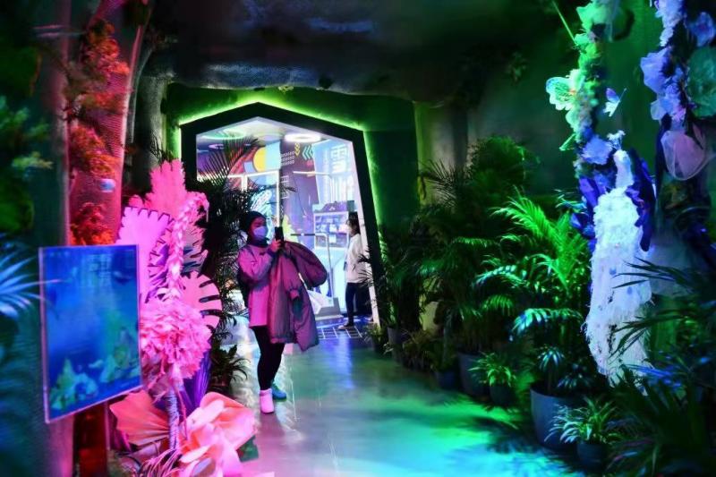 在不规则屋顶拼接的重重“冰山”下,是颐堤港精心打造的名为“雪野仙踪”冬日奇境。进入其中,“雪”“野”“仙踪”和“能量加油站”四大主题空间,通过变幻震撼的光、影、声、电,构建了涵盖极光、丛林与海洋等主题场景,为市民带来“一步、一景、一世界”的无穷乐趣。在充满冬奥元素的“能量加油站”主题空间内,参与者可以戴上VR眼镜,摆出最酷的姿势开启极速滑雪之旅,感兴趣的市民还可以在这里和伙伴们来一场桌面冰球大战,更有冰雪跑酷等沉浸式体验项目,让市民在冰雪飞扬中感受运动的活力与激情。