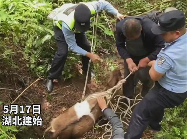 5月17日10时许,湖北省建始县公安局三里派出所接到石牌村五组贫困户周某报警称,其在山上放养的山羊有一只不慎掉落进天坑,请求救援。