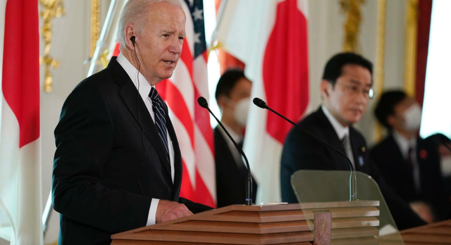 5月23日上午,美国总统拜登与日本首相岸田文雄在位于东京的迎宾馆举行会谈,并召开联合记者会。