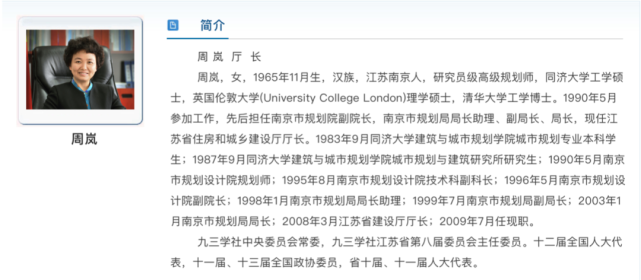 公开资料显示,周岚曾任南京市规划局局长,2008年3月任江苏省建设厅厅长,2009年7月任现职。