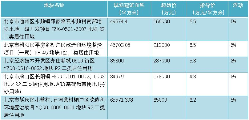 10月10日,已挂出预申请地块包括通州永顺镇,朝阳区平房乡,延庆小言村、石河营村,亦庄新城0510地块,房山长阳地块。