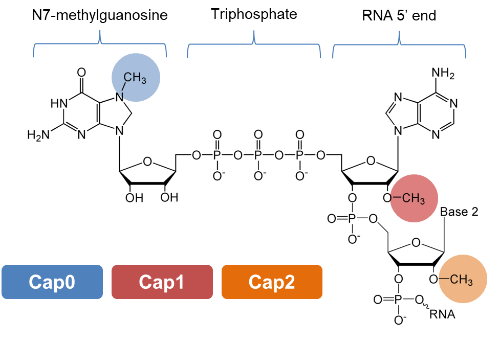 帽结构对宿主细胞和病毒生存都非常重要,它本身的作用是可以维持mRNA的稳定性,防止核酸酶对mRNA的破坏,还可通过帽结合蛋白(cap binding protein)参与mRNA与核糖体的识别,调控蛋白质翻译的顺利进行。但如果是对于必须在宿主细胞中表现生命活性的病毒而言,“安全帽”却恰好起到相反作用。在其生命活动中,通过宿主或病毒自身编码的蛋白质,对病毒mRNA进行加帽。由于其结构与细胞中的帽结构完全相同,除了能保证病毒蛋白质的顺利翻译,还可以使宿主将病毒mRNA“误认为”是宿主核酸分子,从而逃逸宿主天然免疫的攻击。