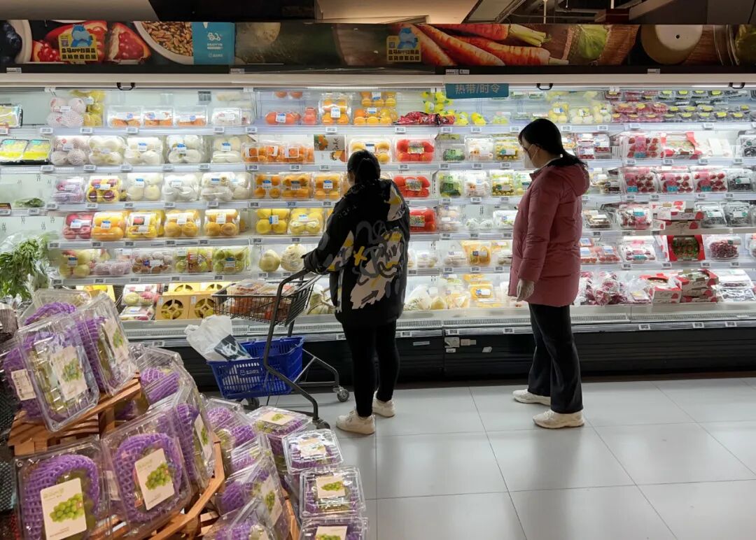 考虑到近期民生物资需求量增大,家乐福提前协调全国六大产区,增大直采力度,提高备货量,确保供需平衡。记者在家乐福广渠门店看到,货架上蔬菜、水果等各类商品供应充足,消费者正在有序购买。