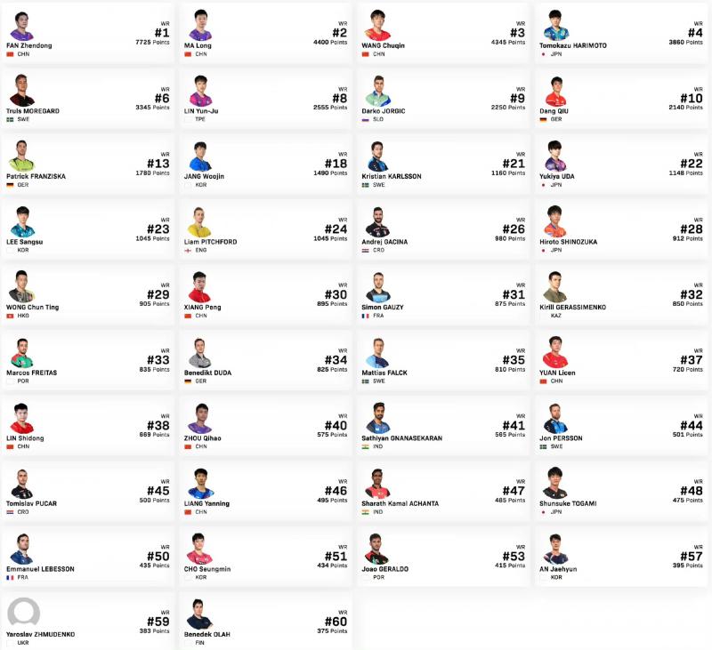 WTT球星挑战赛果阿站完整版外卡名单及WTT提名名单: