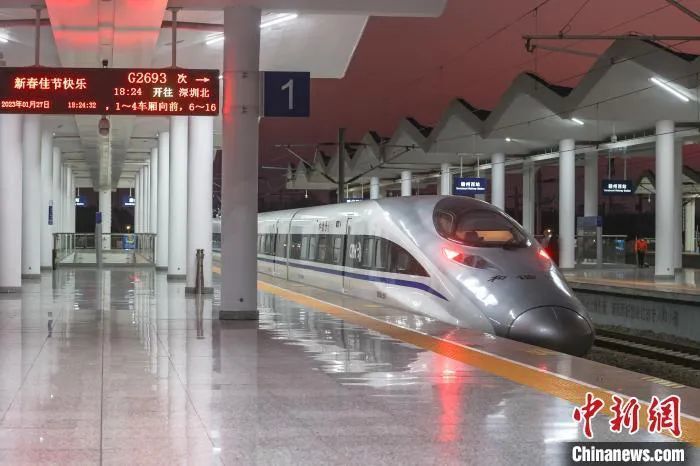 △江西赣州西站,一辆开往深圳北站的列车驶离车站