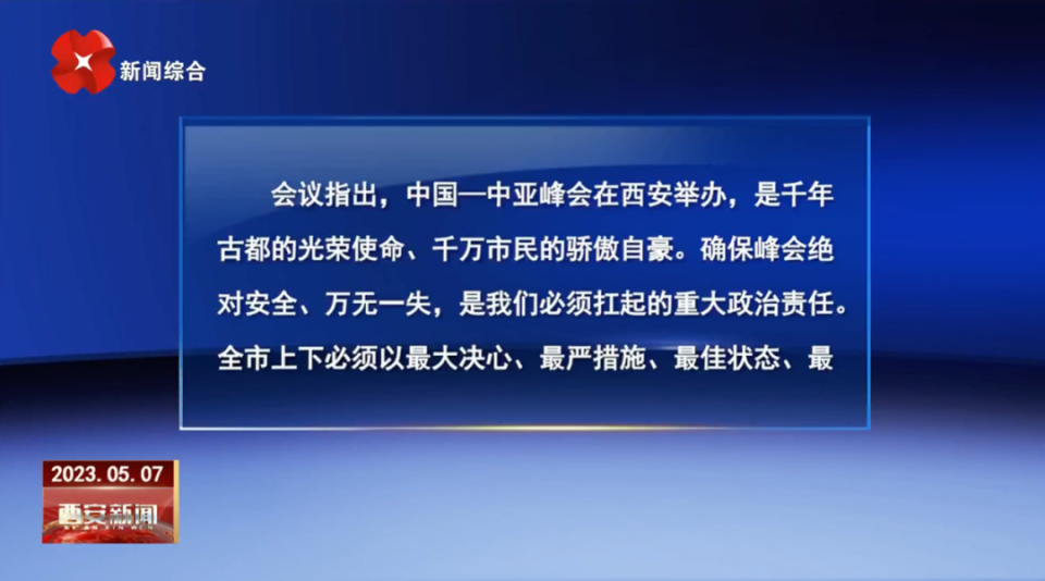 西安市的推进会议提到,中国—中亚峰会在西安举办,是千年古都的光荣使命、千万市民的骄傲自豪。确保峰会绝对安全、万无一失,是我们必须扛起的重大政治责任。