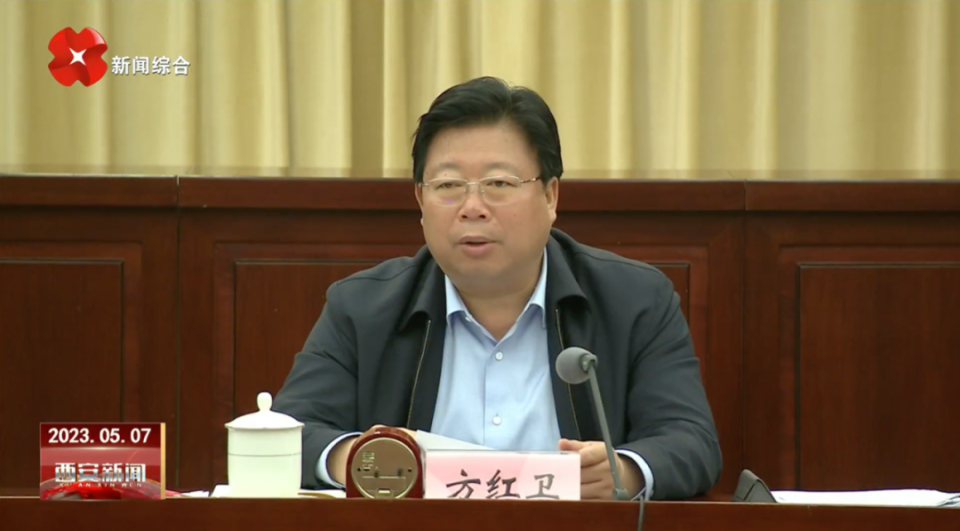 陕西省委常委、西安市委书记方红卫讲话,陕西省副省长、西安市代市长叶牛平主持。叶牛平是今年4月刚刚履新西安市代理市长的,他长期在广东省工作,2022年任陕西省副省长。
