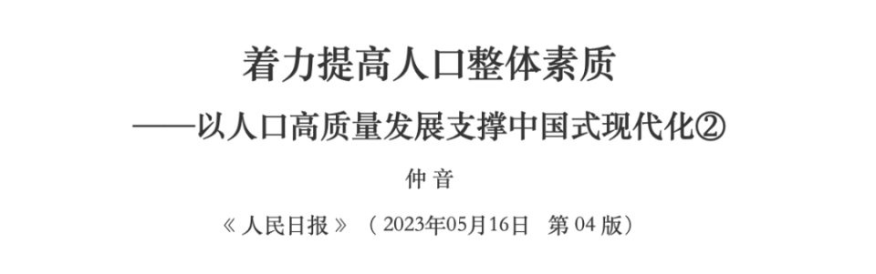 “着力提高人口整体素质,努力保持适度生育水平和人口规模,加快塑造素质优良、总量充裕、结构优化、分布合理的现代化人力资源,以人口高质量发展支撑中国式现代化。”