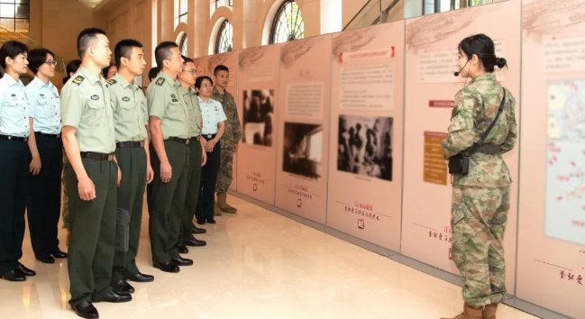 去年夏天,东部战区政治工作部与海南省博物馆联合举办“海南岛战役专题展”。战区首长、机关干部和直属部队官兵观看展览。