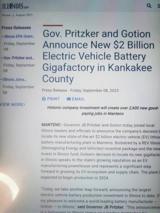 据报道,伊利诺伊州州长表示,国轩高科的工厂将创造2600个就业岗位,是该州“数十年来最重要的新制造业投资”。该工厂将专注于锂离子电池芯、电池组生产和储能系统,获得该州提供的5.36亿美元(40亿元人民币)激励措施。