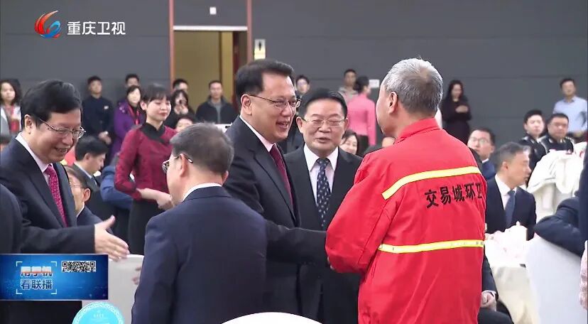 现场画面显示,在重庆市的团拜会上,劳动模范、英模、烈属、专家、学者等代表,基层一线公安干警、环卫工人等出席了团拜会。袁家军等同大家亲切握手、互致问候。