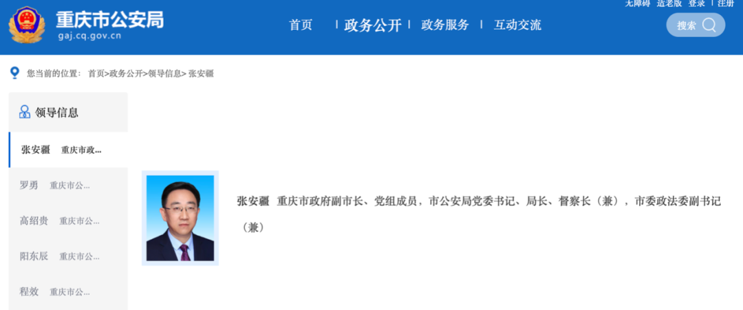 重庆市公安局网站“领导信息”一栏最新信息显示,张安疆现任重庆市政府副市长、党组成员,市公安局党委书记、局长、督察长(兼),市委政法委副书记(兼)。