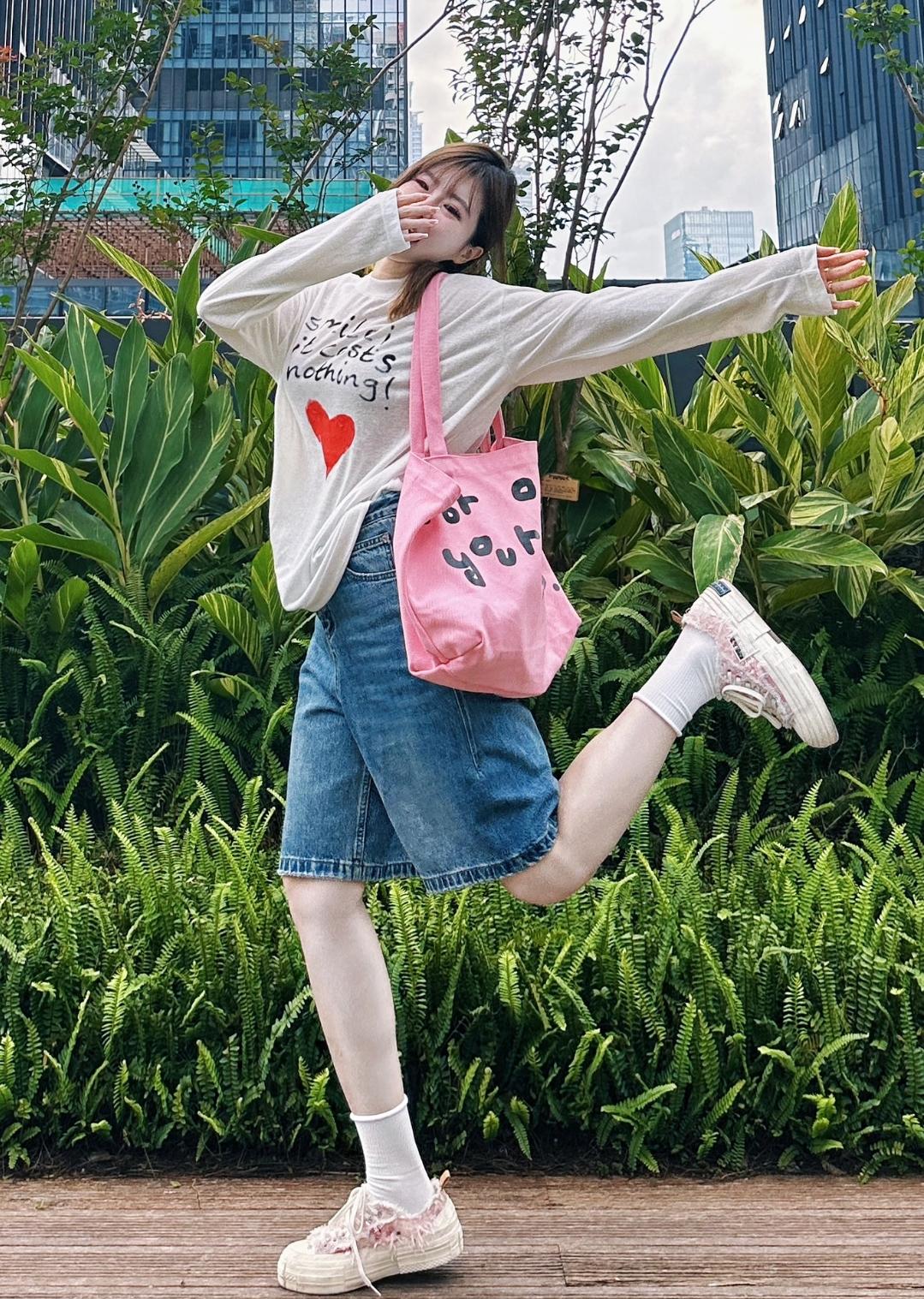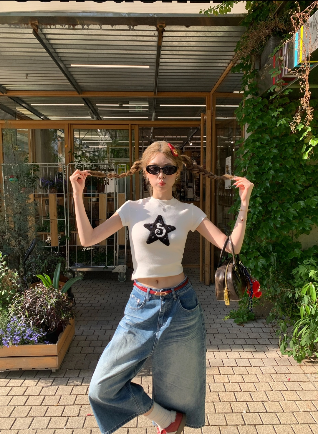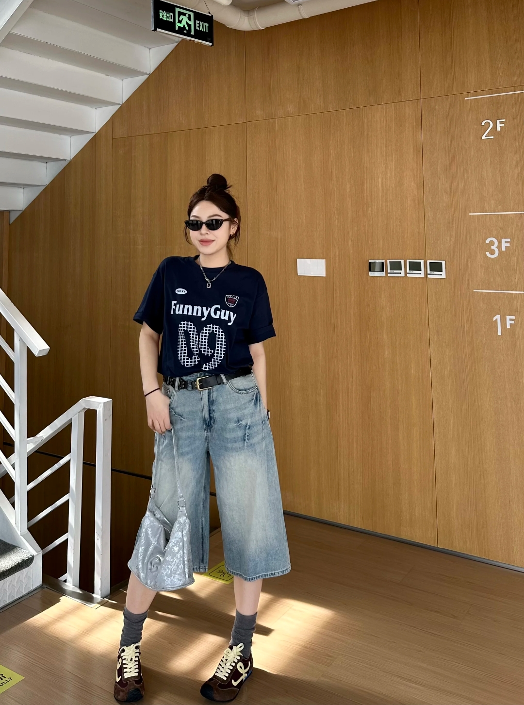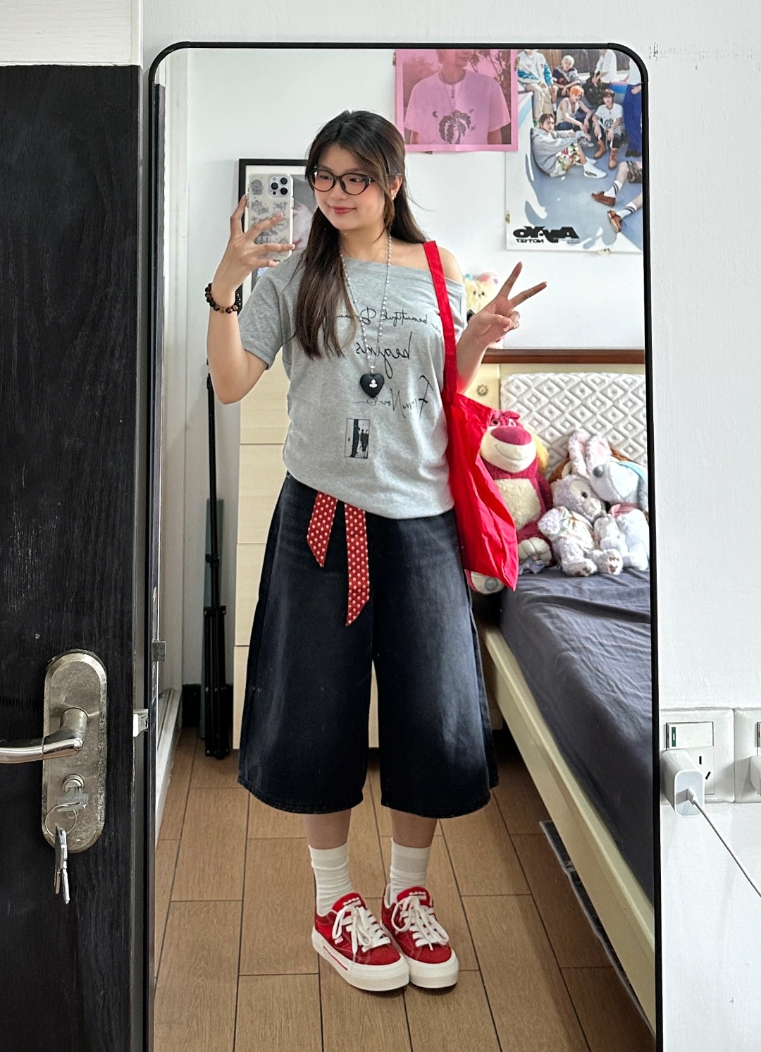 小个子女生穿中裤可以选择更长一点的八分裤,上衣选择短款crop top 或将普通 T 恤扎出 “衣角结”,进一步强调腰线。配饰上细腰带、前进帽等窄檐帽的小面积单品能起到纵向拉伸作用,让整体造型更显挺拔。